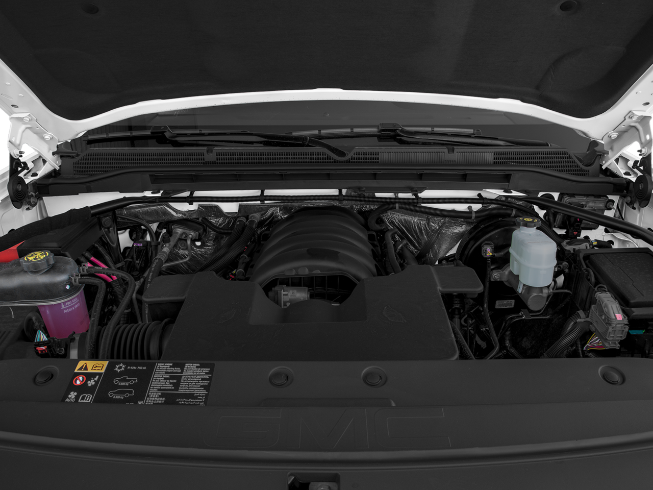 Enhanced Driver Alert Package: Lane Keep Assist; Forward Collision Alert; Low Speed Forward Automatic Braking; Ultrasonic Front and Rear Park Assist; IntelliBeam Automatic High Beam On/off Headlight. SLT Crew Cab Premium Plus Package: Leather Wrapped Heated Steering Wheel; Bose Speaker System; Power Sliding Rear Window with Defogger; Front Full Feature Power Reclining Bucket Seats; Spray-On Pickup Box Bed Liner with GMC Logo; High-Performance LED Headlamps; Integrated Trailer Brake Controller; AM/FM Stereo with 8" Diagonal Color Touch Navigation; Heated and Ventilated Front Bucket Seats; 6" Rectangular Chromed Tubular Assist Steps. Preferred Equipment Group 4SA: LED Cargo Box Lighting; EZ Lift and Lower Tailgate; Chrome Door Handles; Rear Vision Camera; Rear 60/40 Folding Bench Seat (folds Up); Remote Vehicle Starter System; Electric Rear Window Defogger; Theft Deterrent System (unauthorized Entry); Auxiliary External Transmission Oil Cooler; 4.2" Diagonal Color Display Driver Info Center; Trailering Equipment; 110-Volt AC Power Outlet; Thin Profile LED Fog Lamps; 150 Amp Alternator; Steering Wheel Audio Controls; Universal Home Remote; Color-Keyed Carpeting; Power Windows with Driver Express Up and Down; OnStar 3 Month Guidan