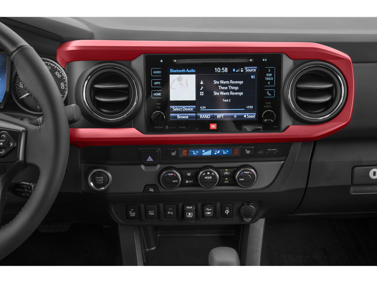 - Radio: Entune Premium w/AM/FM/CD/Nav/App Suite -inc: 6 speakers, 7" high-resolution touch-screen display w/split screen, auxiliary port, USB media port, Siri eyes free, advanced voice recognition, Bluetooth hands-free phone capability, phone book access and music streaming, cache radio, HD Radio, HD predictive traffic and doppler weather overlay and SiriusXM satellite radio w/complimentary SiriusXM All Access 90-day trial subscription included