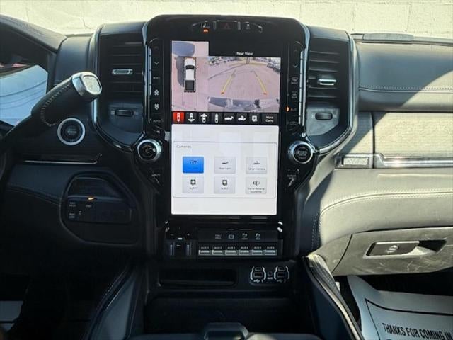 Quick Order Package 2HM Limited. Limited Level 1 Equipment Group: Google Android Auto; SiriusXM Radio Service; Center Stop Lamp with Cargo View Camera; Surround View Camera System; Vendor Painted Cargo Box; For Details. Visit DriveUconnect.com; For More Info. Call 800-643-2112; Integrated Voice Command with Bluetooth®; LED Bed Lighting; Connectivity - US/Canada; Power Deployable Running Boards; 12" Touchscreen Display; GPS Navigation; 4G LTE Wi-Fi Hot Spot; RamBox Cargo Management System; Adaptive Steering System; GPS Antenna Input; SiriusXM with 360L; Global Telematics Box Module; Connected Travel and Traffic Services; Alexa Built-In; Trailer Reverse Guidance; Vendor Painted Cargo Box Tracking; Apple CarPlay; Off-Road Information Pages; Selectable Tire Fill Alert; Trailer Tow Pages; Disassociated Touchscreen Display; HD Radio; Ramcharger Wireless Charging Pad; Uconnect 5 Navigation with 12.0" Display Radio; 4 Adjustable Cargo Tie-Down Hooks; Full Speed Forward Collision Warning Plus; MOPAR Spray in Bedliner; 17 Speaker Harman/kardon Premium Sound; Truck Bed Cargo Divider; Adaptive Cruise Control with Stop; Digital Rearview Mirror; Lane Keep Assist. Night Edition: Black Exterior Truck Badging; Black Ram Head Tailgate Badge; Body Color Grille Surround; Black Headlamp Bezels; Sport Performance Hood; Black Grille Limited; 20" X 8.0" Cast Aluminum Black Wheels; Black Wheel Center Hub; Black Tail Lamp Bezels. 5th Wheel/gooseneck Towing Prep Group. Anti-Spin Differential Rear Axle. Center Stop Lamp with Cargo View Camera. Adaptive Steering System. Granite Crystal Met CC. Instrument Panel Mounted Auxiliary Switches. Clearance Lamps. **Equipment listed is based on original vehicle build and subject to change. Please confirm the accuracy of the included equipment by calling the dealer prior to purchase.**