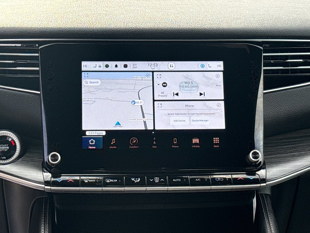 An off-road package is installed on this model so you are ready for your four-wheeling best. This Jeep Wagoneer features a hands-free Bluetooth® phone system. This vehicle has auto-adjust speed for safe following. The installed navigation system will keep you on the right path. with XM/Sirus Satellite Radio you are no longer restricted by poor quality local radio stations while driving the vehicle. Anywhere on the planet, you will have hundreds of digital stations to choose from. The vehicle offers Apple CarPlay for seamless connectivity. This vehicle is a certified CARFAX 1-owner. This Jeep Wagoneer is pure luxury with a heated steering wheel. This 1/2 ton suv has a clean CARFAX vehicle history report. This vehicle offers Android Auto for seamless smartphone integration. The leather seats in this 1/2 ton suv are a must for buyers looking for comfort, durability, and style. This vehicle's Forward Collision Warning system alerts the driver to potential front-end collisions, enhancing safety.